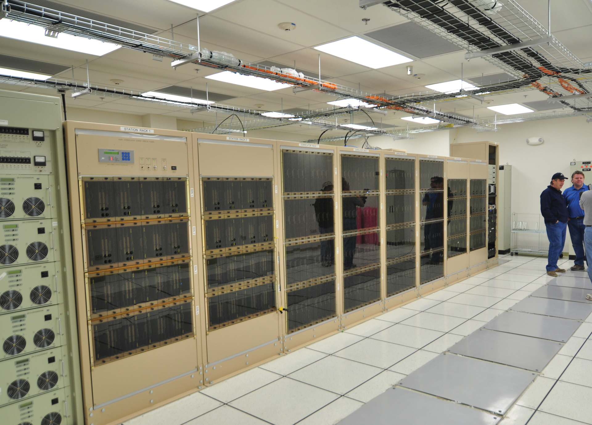 The four-quadrant ALMA Correlator inside the Array Operations Site Technical Building at 16,500 feet elevation in northern Chile, December 2009. This supercomputer can process 17 quadrillion operations every second.